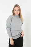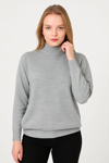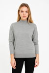 Velmora Fashion VF-Kadın Yarım Boğaz Triko Kazak yumuşak dokulu Pamuklu ince Dokuma, uzun kollu Rahat Regular kalıp - Gri