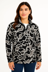 Velmora Fashion VF-Yarım Fermuarlı Desenli Polar Sweat Yakalı, Uzun Kollu, Oversize Rahat Kalıp - Siyah -