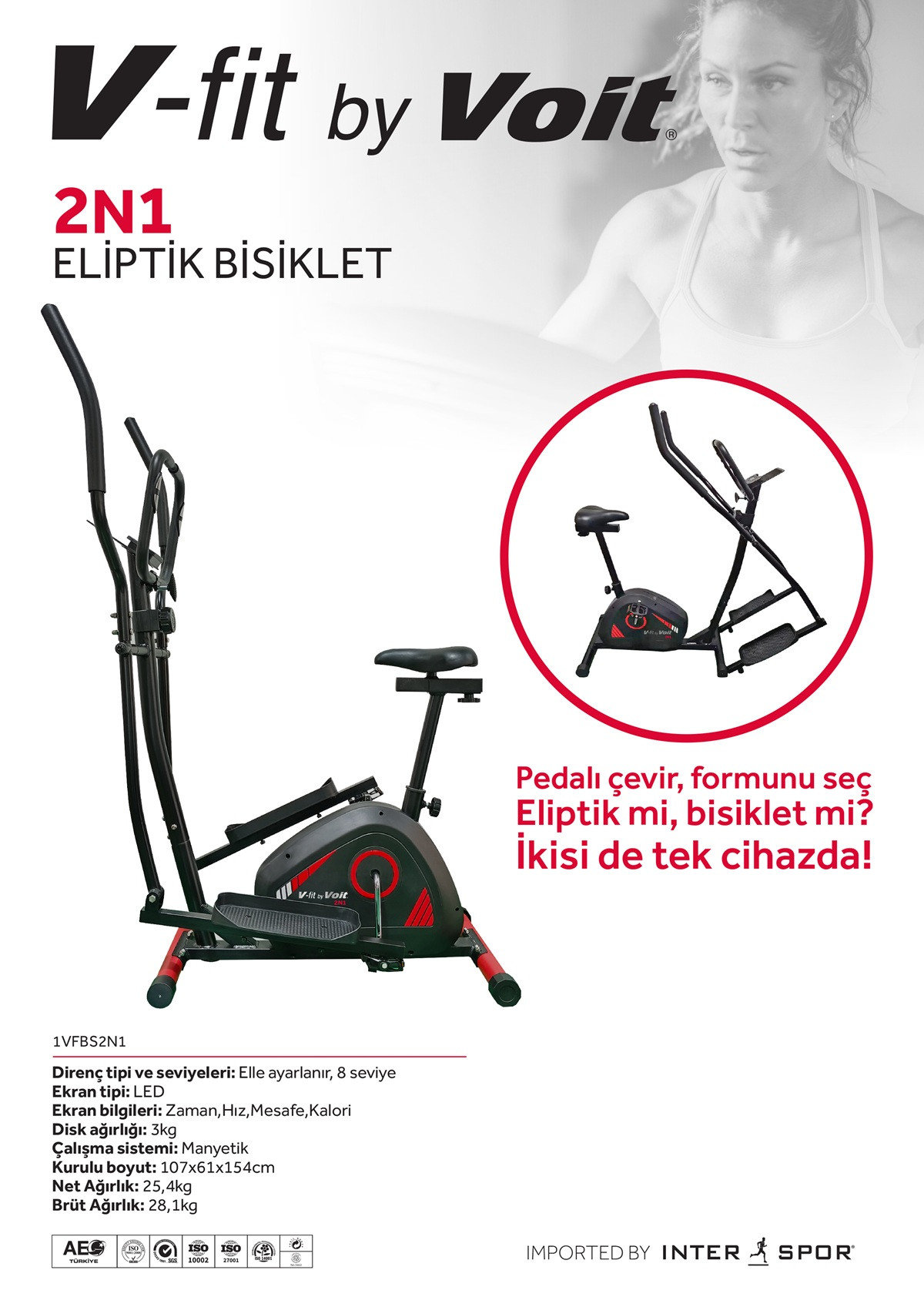 Vfit By Voit 2'si 1 Arada Nabız Ölçer Manyetik Kondisyon Bisikleti - Eliptik Bisiklet - Kondisyon Aleti