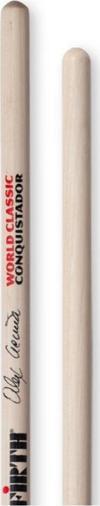 Alex Acuña “Clear Conquistador” (SAAC) The Vic Firth Alex Acuna Clear Conquistador Hickory Timbale sticks are designed to provide optimum response on timbales and cymbals. Alex's popular Conquistador model with a clean, clear finish. Length = 16" Diameter = .440" Material: Hickory Surface Coating: Clear LACQUER