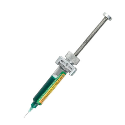 Lehim macunu, flux ve UV lehim yağı gibi yoğun kıvamlı malzemeleri şırıngadan kontrollü, güçlü ve hassas şekilde çıkarmanızı sağlayan profesyonel dozajlama aparatıdır. Vida mekanizması sayesinde şırınga pistonunu yavaş ve dengeli iter, ani taşmaları ve malzeme israfını önler.