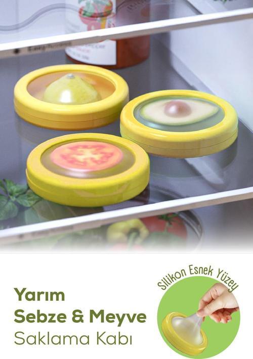 Vienev 3lü Buzdolabı İçin Yarım Meyve ve Sebze Koruma Kabı - Limon, Soğan, Domates Saklama Kutusu Sarı