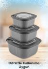 3lü Mikrodalga ve Difrize Uygun Vip Kapaklı Özel Saklama Kabı Seti Antrasit