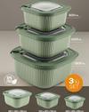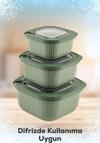 3lü Mikrodalga ve Difrize Uygun Vip Kapaklı Özel Saklama Kabı Seti Yeşil