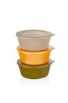 Üçlü saklama kabı seti, mutfakta düzeni sağlamak için ideal bir çözüm sunar