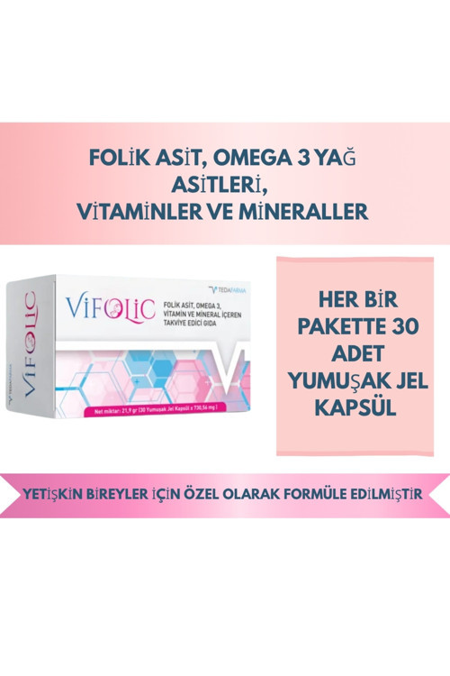 Vifolic - Folik Asit, Omega 3, Vitamin ve Mineral İçeren 30 Yumuşak Jel Kapsül