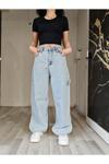 Yüksek Bel Geniş Paça Jean Buz Mavisi - Image 1