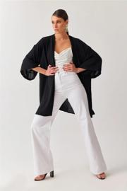 - Palazzo kalıbı geniş paça tasarımının modern çizgilerle buluştuğu stil sahibi bir görünüm sergiler.