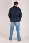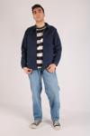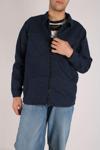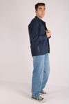 Dijital baskı teknolojisi kullanılarak üretilmiş, modern ve şık armürlü deseniyle dikkat çeken lacivert erkek oversize ceket.