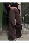 Viking's Line Kahverengi Likralı Süper Yüksek Bel Salaş Jeans Palazzo Pantolon. (Süper Yüksek) Wide Leg