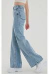 Kar Yıkama Salaş Kot Pantolon Buz Mavi Kar Likrasız Palazzo