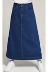 Etek .--Bossa. Kot tarzı koton kumaş, düz tasarım, maksi tasarım, normal bel, kemer köprülü, beş cepli, fermuarlı ve düğmeli, total look. 100% pamuk. Yan dikiş uzunluğu 100.5 cm, etek uzunluğu 99.7 cm. Kısa santrfüjle makinede maks. 30°c'de yıkayın, çamaşır suyu kullanmayın, maks. 110°c ile ütüleyin, kuru temizleme yapılmaz, kurutma makinesinde kurutulamaz