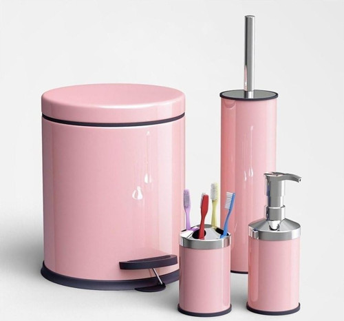 Eko Serisi 4' Lü Banyo Seti Çöp Kovası+Kolozet Fırçası+Sabunluk+Fırçalık Pembe