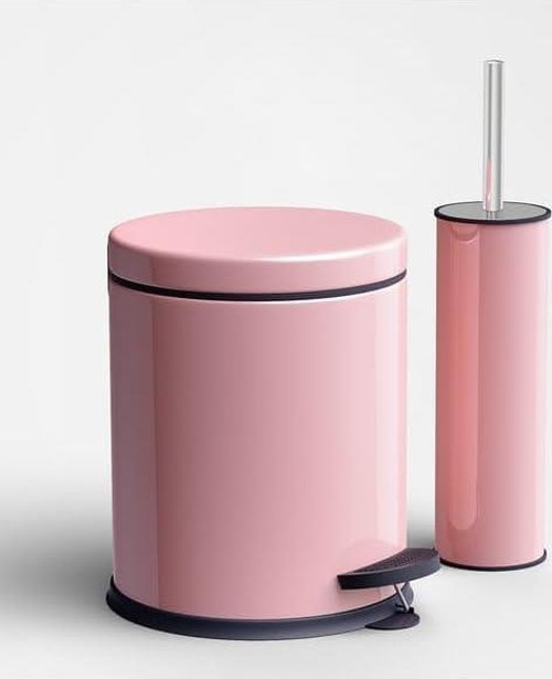 Vinoks Eko Serisi Ayak Basmalı Özellikli 2'li Banyo Seti 3 Litre Çöp Kovası ve Kolozet Fırçası Paslanmaz Pembe