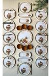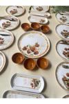 •12 adet 20 cm servis tabağı •1 adet 25 cm büyük yuvarlak servis tabağı •6 adet sosluk •2 adet zeytinlik •2 adet oval peynir tabağı