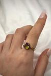 Leostone Vintage Seri Ayarlanabilir Paslanmaz Kararmaz Düz Kollu Damla Tasarım Zultanit Doğal Taş Bronz Yüzük