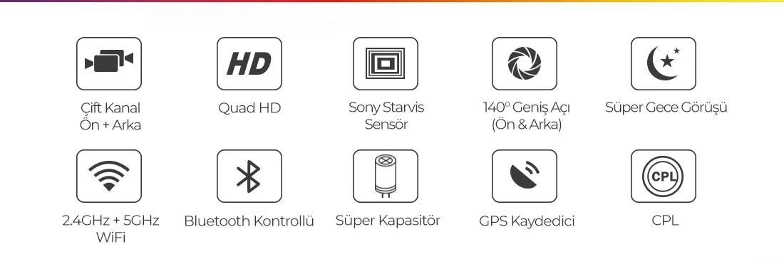 - Video Çözünürlüğü: Ön: Quad HD (2560x1440P FPS) Arka: Full HD (1920x1080P 30 FPS)