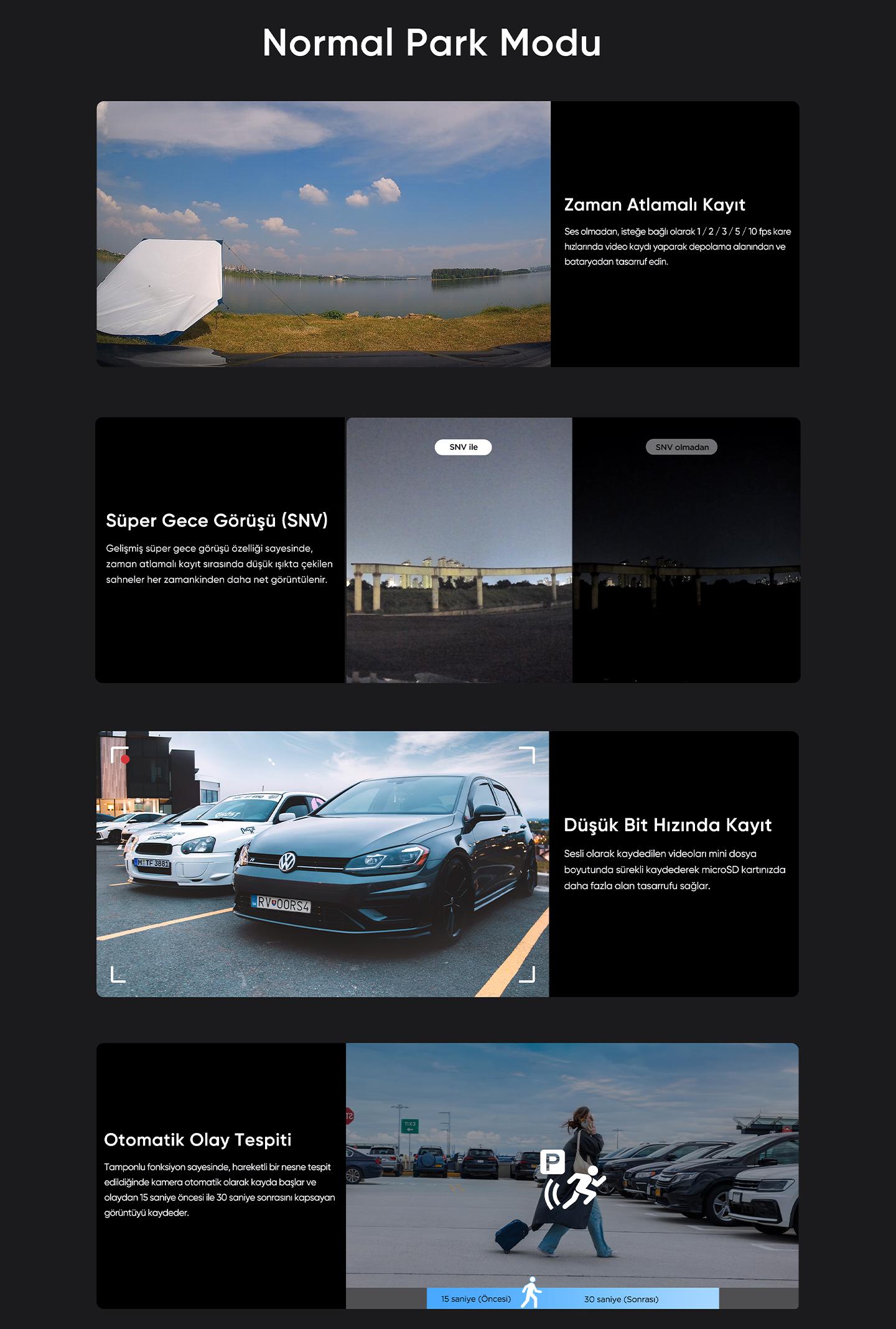 - Park Modu: Desteklenen (Otomatik Olay Algılama/Time-lapse/Düşük Bitrate)