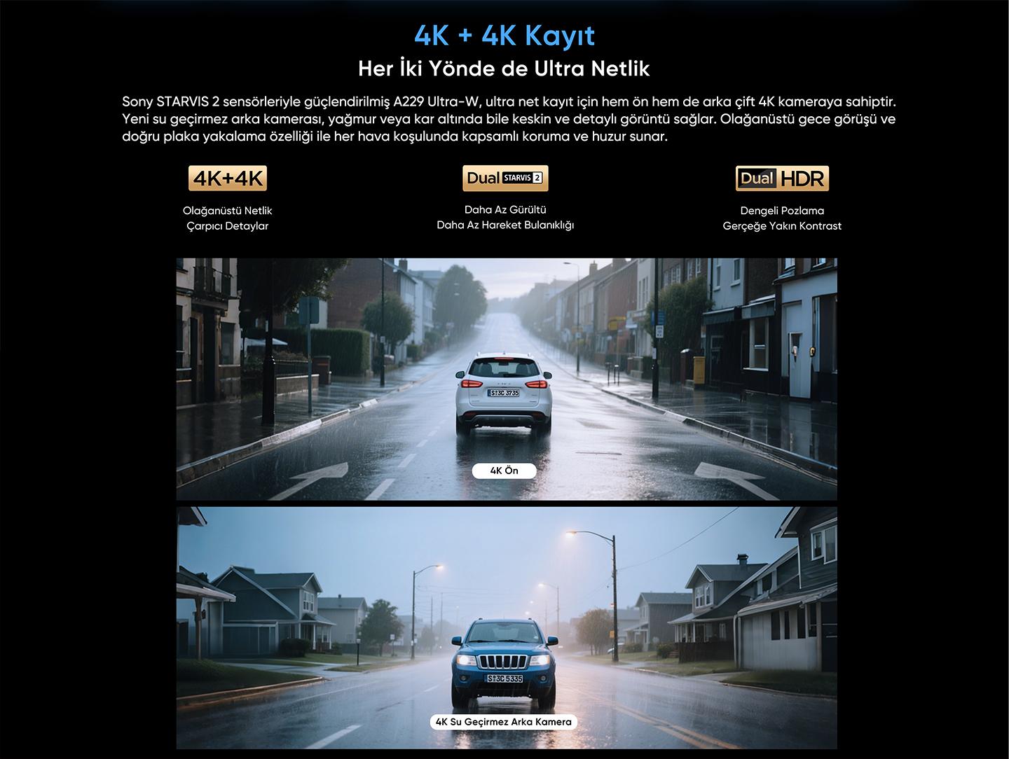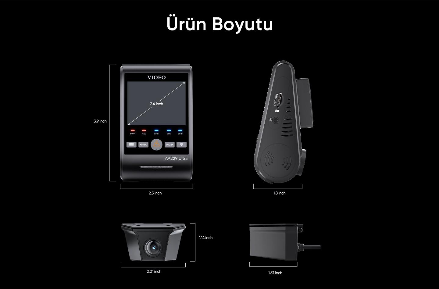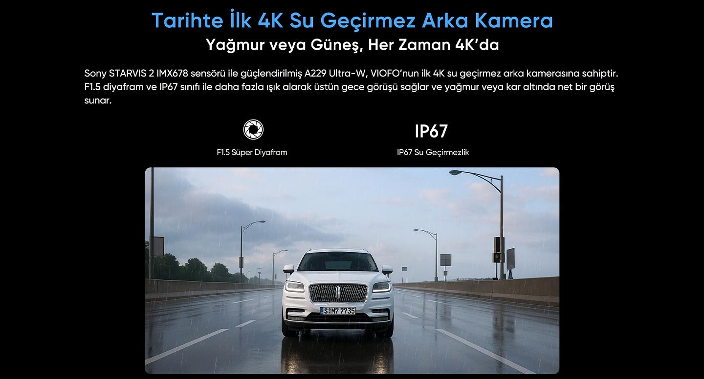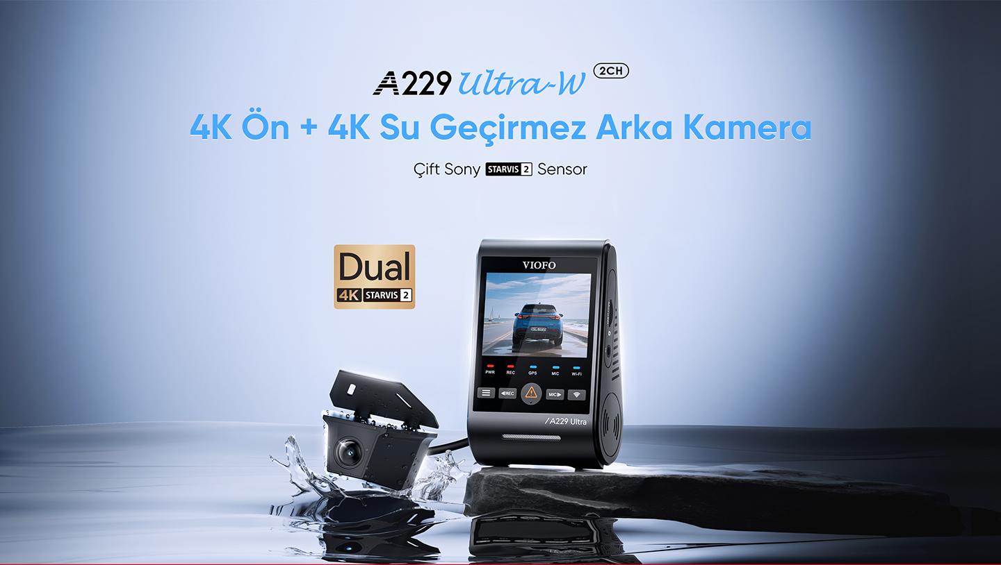Viofo A229 Ultra 2 Kameralı Ön ve Arka Dış Su Geçirmez 4K+4K Sony Starvis 2 Sensörlü Dual HDR Wi-Fi 6 GPS'li Araç Kamera