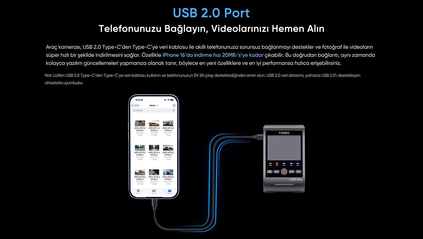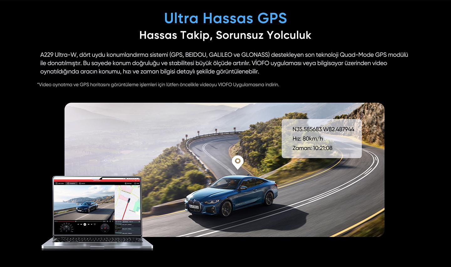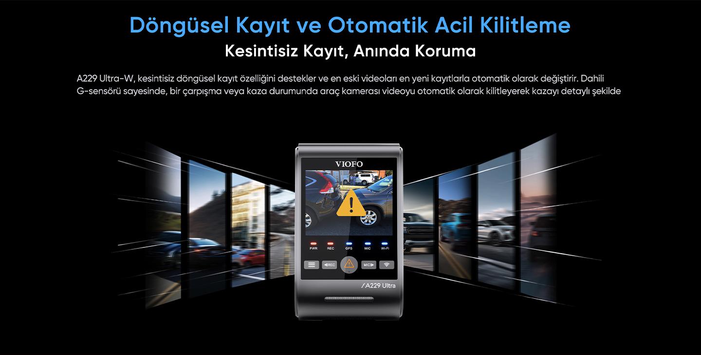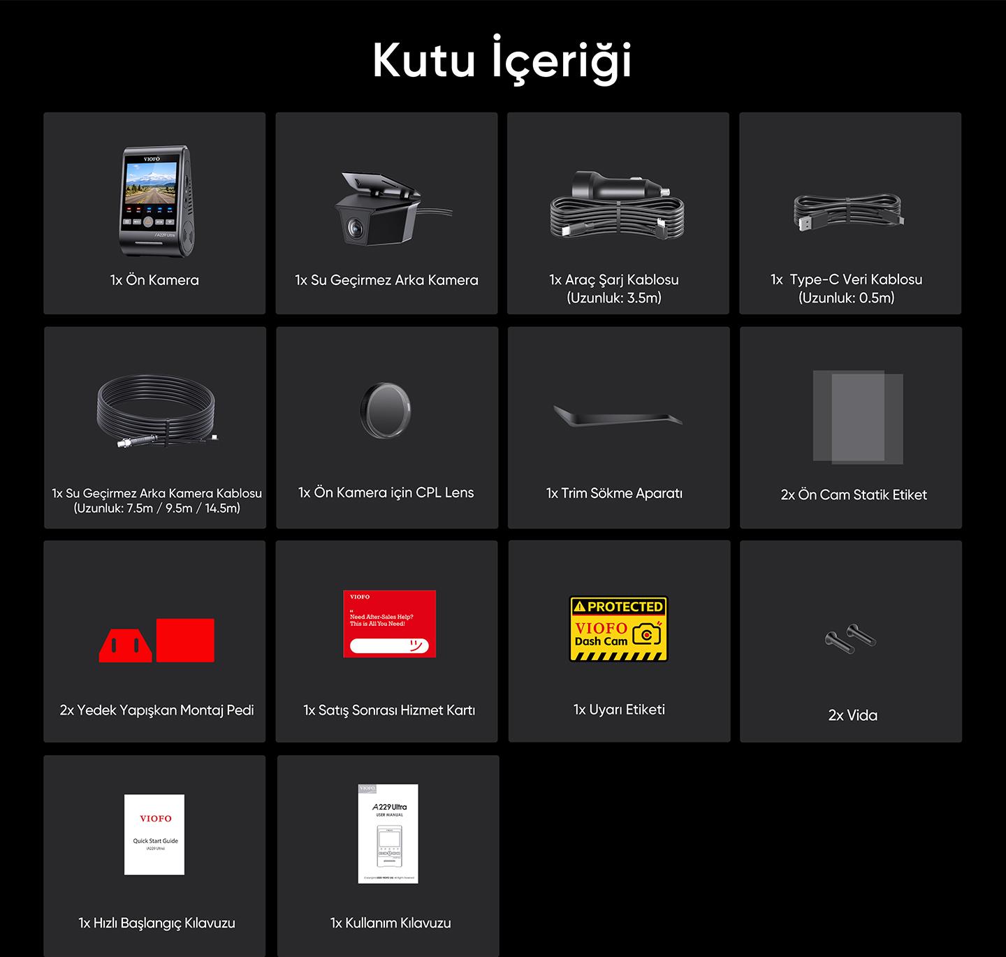 Viofo A229 Ultra 2 Kameralı Ön ve Arka Dış Su Geçirmez 4K+4K Sony Starvis 2 Sensörlü Dual HDR Wi-Fi 6 GPS'li Araç Kamera