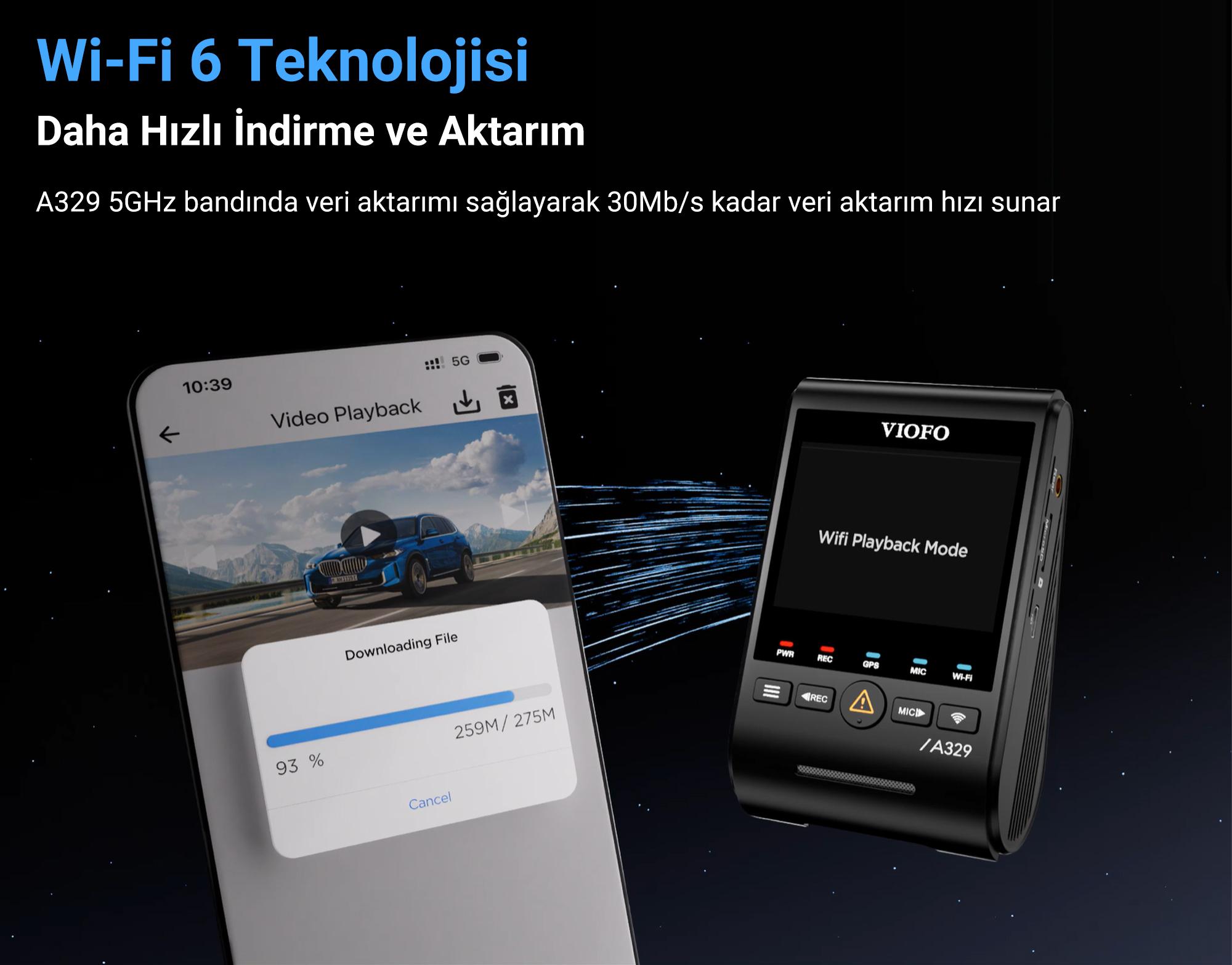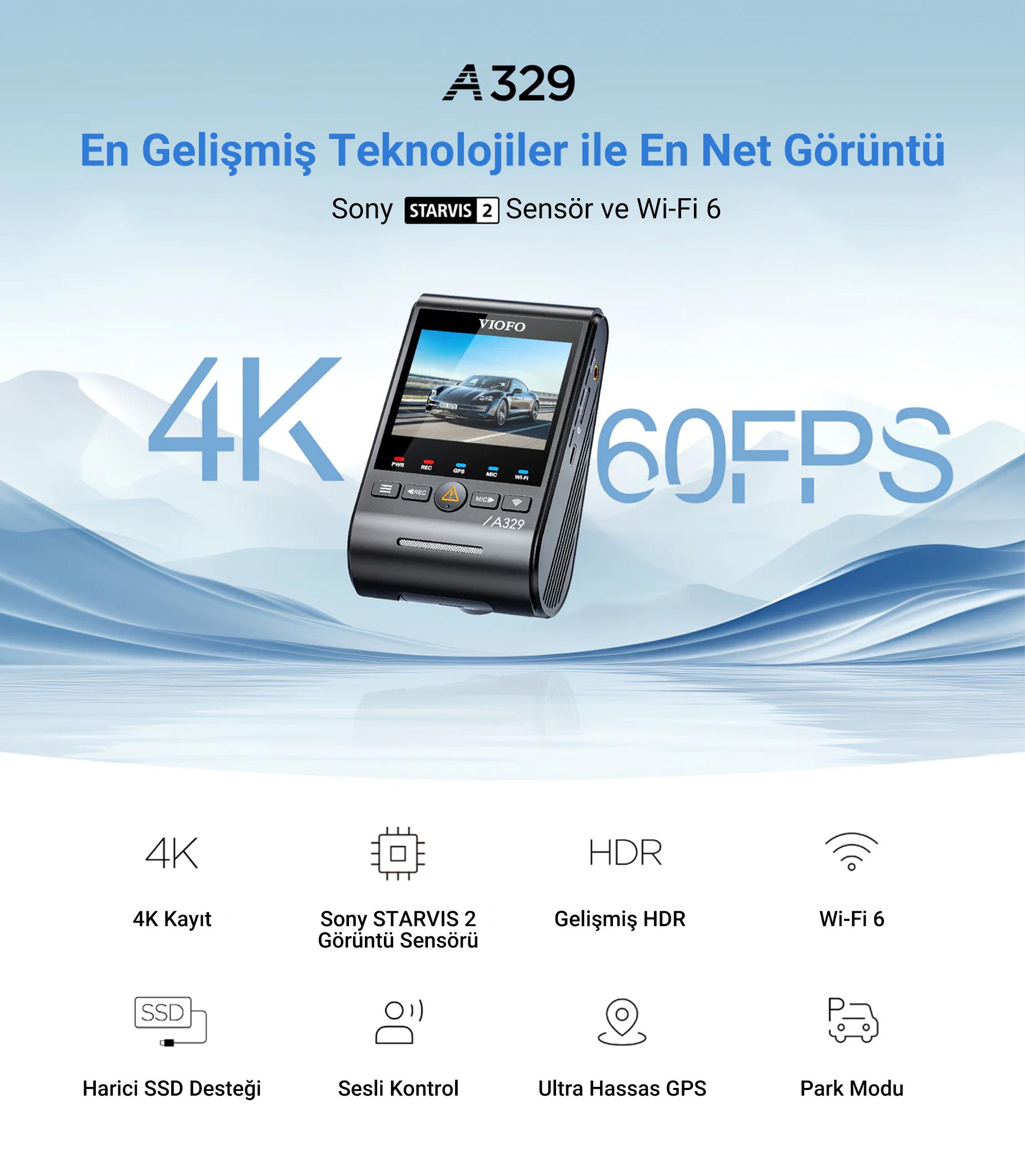 Viofo A329 4K HDR Sony Starvis 2 Sensörlü Wi-Fi 6 SSD Destekli GPS'li Araç Kamerası, yolculuğunuzu yüksek çözünürlükte kayıt altına alarak sürüş güvenliğinizi arttırır. İçerisinde bulunan G sensörü ile sarsıntıları algılayarak kaza anında çekilen görüntüleri depolama biriminizden kamera tarafından silinemeyecek hale getirerek kilitler bu özelliği manuel olarak tetiklemek için kamera üzerinde bulunan sarı uyarı sembolünü kullanabilirsiniz. Kutu içerisinde çıkan 2 Type-C porta sahip 45W çakmaklık şarjı ile park modunu kullanmadığınız durumda kamerayı beslerken aynı zamanda başka bir cihazınıza güç verebilirsiniz. Yine kutu içerisinden çıkan CPL filtreyi kullanarak güneş yansıması kaynaklı görüntü kayıplarının önüne geçebilirsiniz.