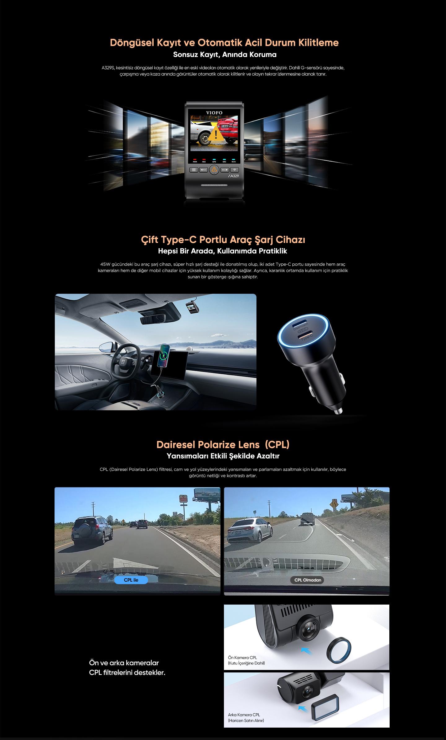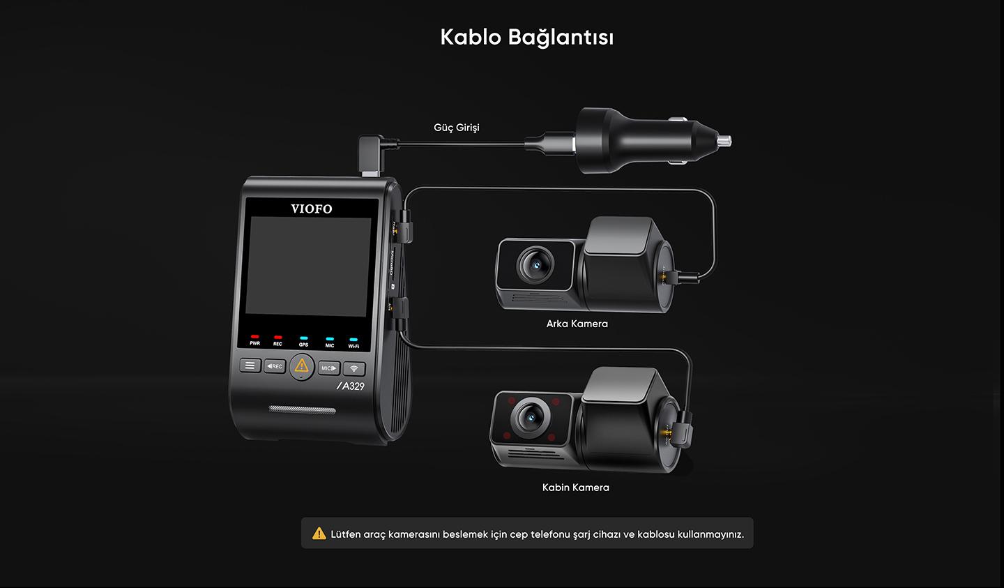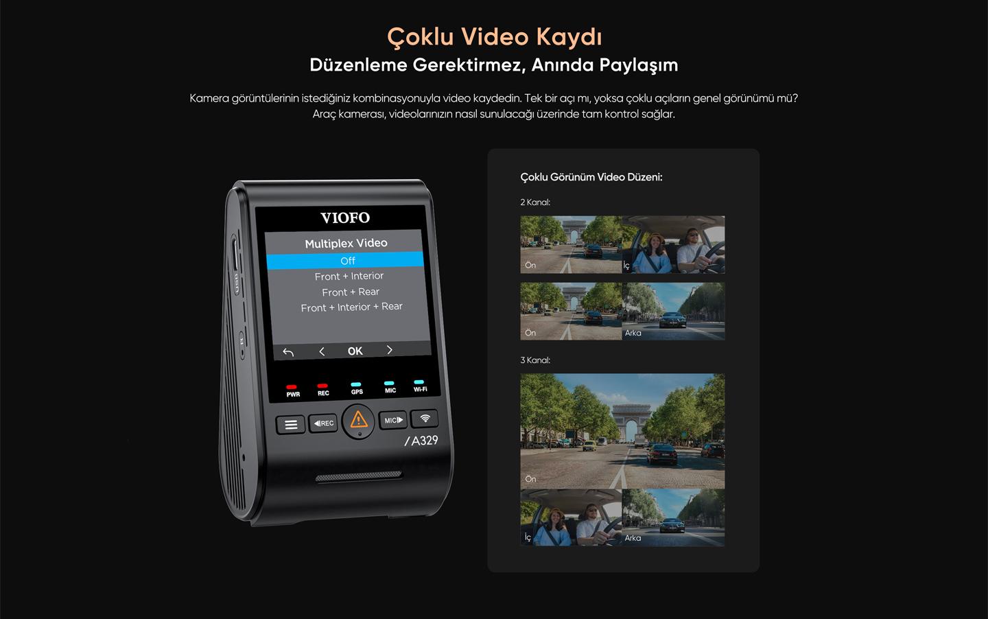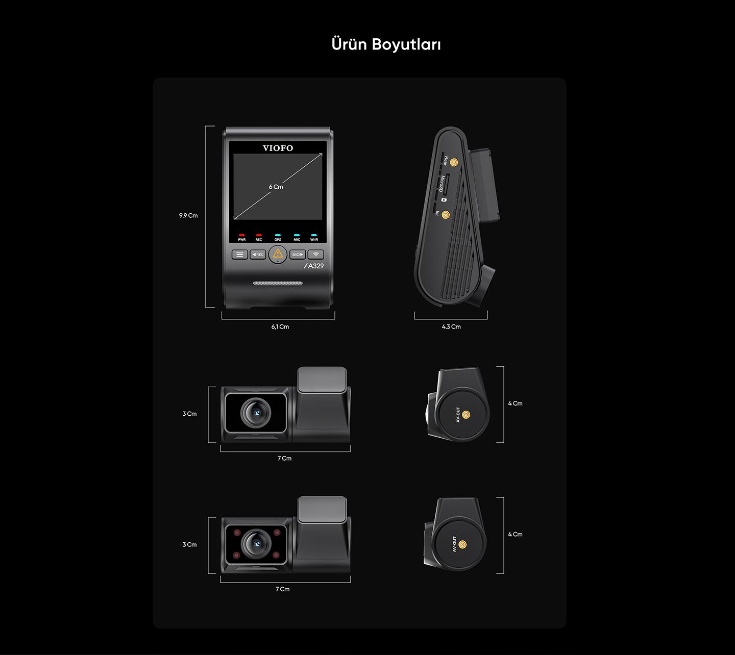 Viofo A329S 3 Kameralı Ön+Arka+İç 4K+2K+2K Wi-Fi 6 HDR Sony STARVIS 2 Sensör GPS'li SSD Destekli Araç Kamerası