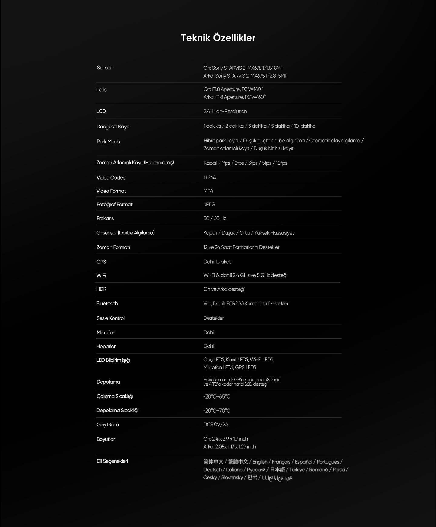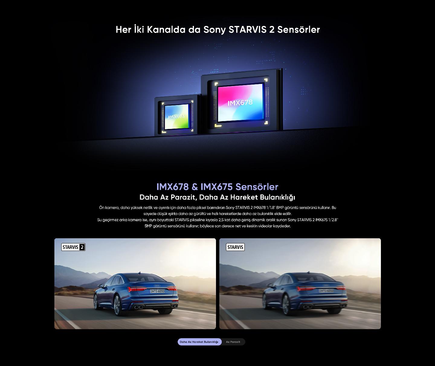 - Arka Kamera: Sony STARVIS 2 IMX675 1/2.8" 5MP sensör su geçirmez