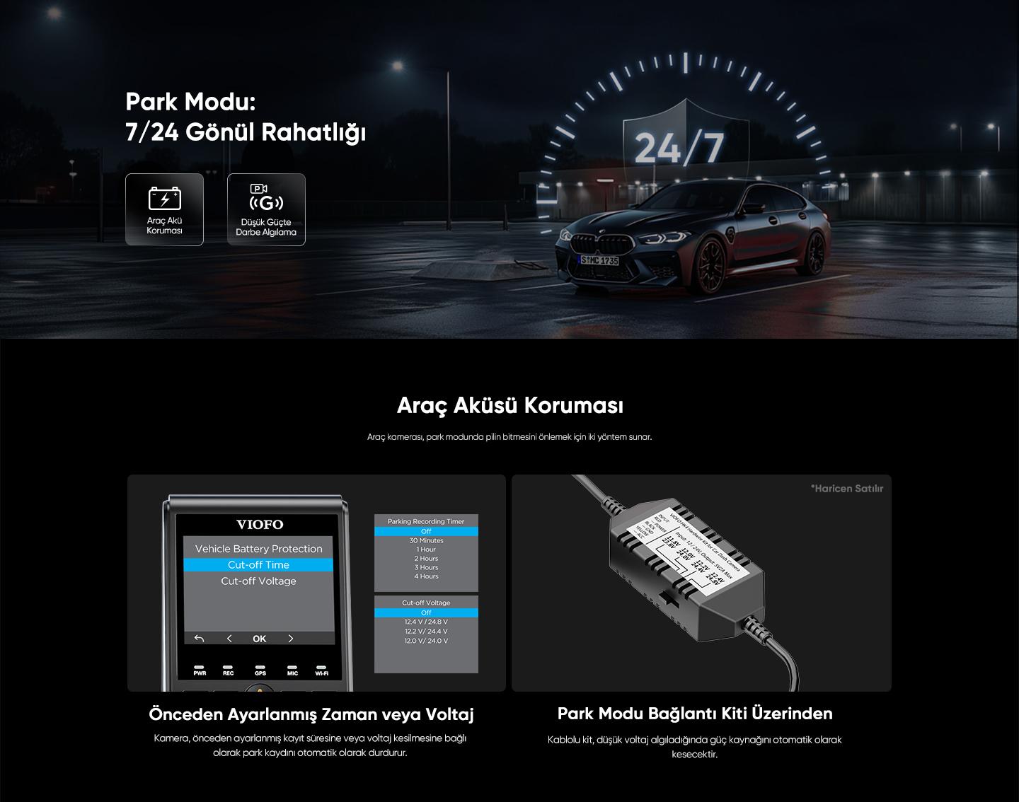 Hayır, gelişmiş akü koruma sistemi ile park modunda güvenle kullanabilirsiniz. Önceden ayarlanmış süre veya voltaj kesme değeri ile otomatik kapanır. HK6 hardwire kiti düşük voltaj algıladığında güç beslemesini otomatik keser.