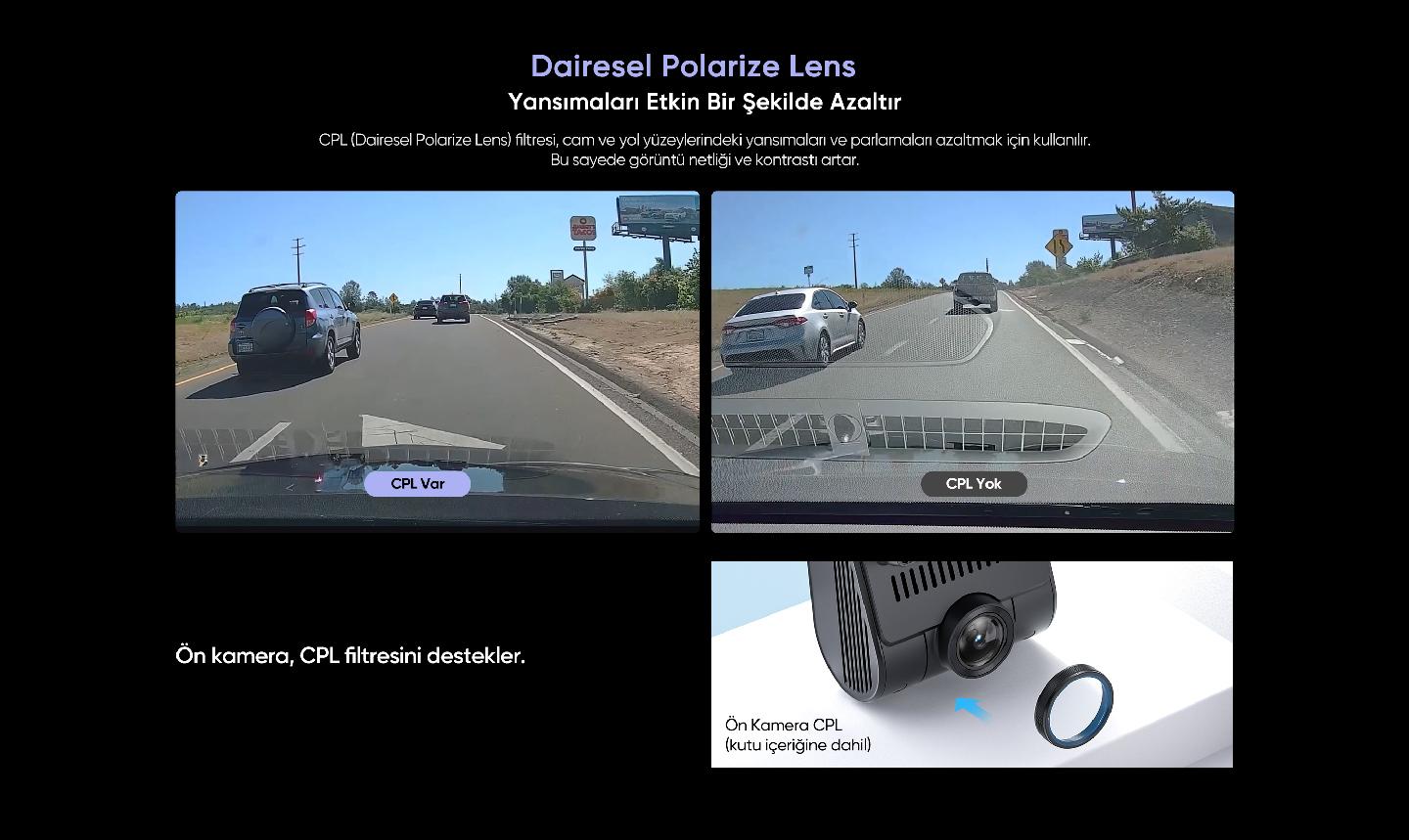 - CPL Filtre: Ön kamera için dairesel polarize lens desteği