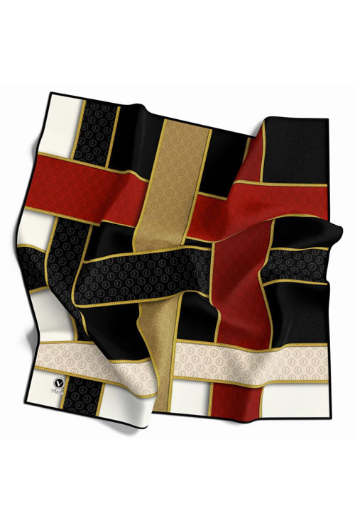 Violla Twill Şeritleri Monogram Desenli Siyah - Bordo Renkli 90x90 Eşarp (İpek İçermez) Dikim Şekli : El Dikişi