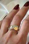 Gold Renk Pirinç Zirkon Taşlı Kalp Model Kadın Yüzük - Image 1