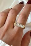 Fasek Gold Gümüş Yüzük - Signity Swarovski Taşlı Düz Çizgi Modern Dizayn 925 Ayar Gümüş Yüzük