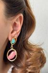 Leostone VIP Asimetrik Sallantılı Mineli Taşlı Tasarım Kararmaz Renk Atmaz Kadın Çelik Küpe