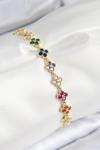 VIP Pirinç Renkli Zirkon Taşlı Yonca Model Gold Renk Kadın Bileklik