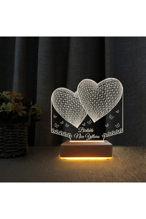 Vipyol Led Gece Lambası Kalpli Dizayn Birlikte Nice Yıllara Yazılı ve Yıl Dönümü ve Doğum Günü Hediyesi