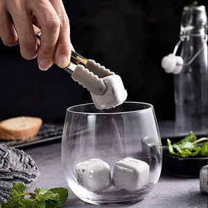 9'lu Granit Mermer Viski Taşı ve Buz Maşası Seti