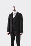 Erkek Siyah Poliviskon Trend Yelekli Desenli Slim Fit Sivri Yaka Takım Elbise - Image 1