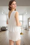 Viskon kumaşın nefes alabilir ve yumuşak dokusu, cildinizde ipeksi bir his bırakır. Fırfır detayları, takıma şık bir hava katarak sıradanlığın dışına çıkarır. Regular kalıp ve normal bel yapısı, her vücut tipine uyum sağlayarak rahat bir kullanım deneyimi sunar. Kolsuz üst ve şort alt, yaz aylarının sıcak günlerinde serin kalmanıza yardımcı olur. Boru paça şort tasarımı, şık ve modern bir görünüm sağlar. Makinede yıkanabilir özelliğiyle pratik bir kullanım sunarak zamandan tasarruf etmenizi sağlar.