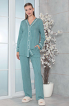 Ön bölümünde şık dantel detayları bulunan pijama üstü, salaş kesimiyle hareket özgürlüğü sağlar. Pantolon ise, elastik bel bandıyla vücudu sıkmadan rahatça giyilebilir.