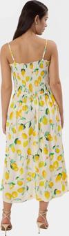 Elbisenin ön boyu 120 cm'dir. Modelin ölçüleri: Boy 174 cm, GöğüS-81 cm, BeL-60 cm, Kalça 87 cm . Bu şık elbiseyi, sandaletleriniz, espadrilleriniz veya şık terliklerinizle kombinleyerek gününüzü renklendirebilirsiniz. Şehir gezilerinizden plaj günlerinize kadar her yerde kendinizi rahat ve şık hissedeceksiniz.