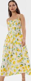 Yumuşak ve hafif dokumasıyla 100% viskoz kumaştan üretilen elbise, gün boyu konforlu bir kullanım sunuyor. Astarsız tasarımı, hafif ve serin kalmanıza yardımcı olurken, midi boyu ve skater siluetiyle her vücut tipine uyum sağlıyor. Kolay bakımıyla da zamanınızdan tasarruf etmenizi sağlar. Makinede yıkanabilir.