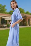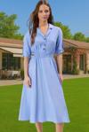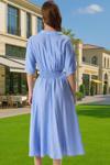 Bu zarif ve rahat midi elbise, günlük stilinize şıklık katmak için mükemmel bir seçenek. Nefes alabilen viskoz karışımlı kumaşıyla gün boyu konfor sunarken, A kesim tasarımı her vücut tipine uyum sağlar. Gipeli detayı ve gömlek yakasıyla hem modern hem de zamansız bir görünüm elde edersiniz. Hafif ve serinleten kumaşı yaz aylarında idealdir. Bel kısmındaki lastik detayı, vücudunuzu saran ve şekillendiren bir silüet oluşturur. Şık ve zarif bir görünüm için topuklu ayakkabı ve minimal takılarla kombinleyebilirsiniz. Rahat bir tarz için ise spor ayakkabılar ve düz sandaletlerle tamamlayabilirsiniz. Her zaman şık ve rahat hissetmek isteyen kadınlar için mükemmel bir tercihtir.