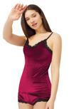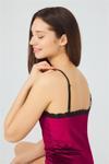 Vişne Dantel Detaylı İnce Askılı Kadife Kadın Atletli Şortlu Takım