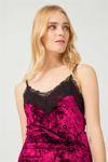 Vişne Dantel Detaylı Kadife Kadın Pijama Takımı