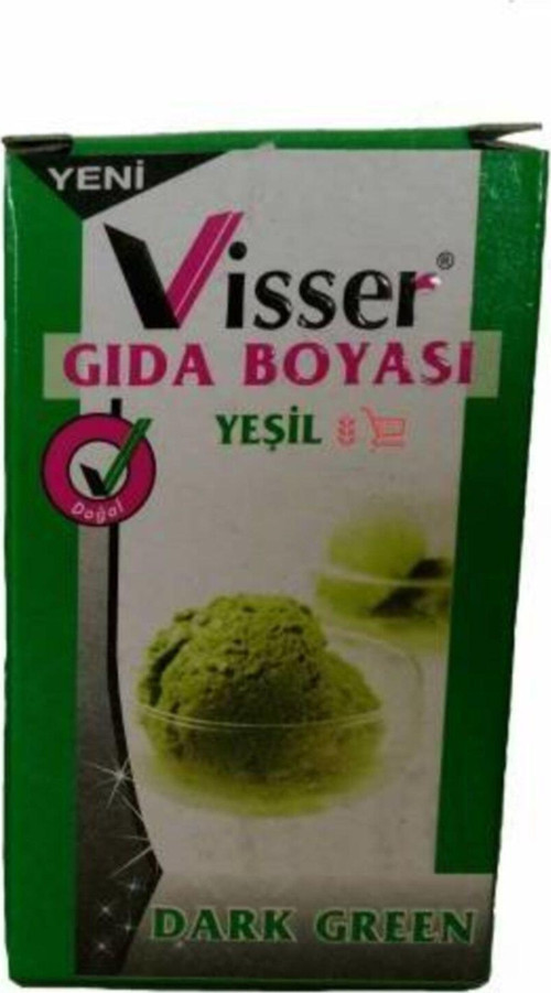 Visser markasının kaliteli toz gıda boyası, yiyeceklerinize canlı ve çekici bir yeşil renk katmak için idealdir.