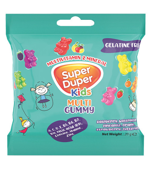 Şeker, glukoz şurubu (mısır), su, multivitamin ve mineral karışımı (%2) [C vitamini, maltodekstrin, E vitamini, kolin, D3 vitamini, pantotenik asit, A vitamini, çinko, B12 vitamini, B6 vitamini, folat, lyot, biotin], kıvam arttırıcı (pektin), nemlendirici (sorbitol), elma suyu konsantresi (%1), sitrik asit, renk vericiler (paprika, spirulina ekstraktı, kurkumin, siyah havuç suyu konsantresi, kırmızı turp), doğal aroma vericiler (portakal, çilek, karpuz, ahududu, ananas), aroma verici (tutti frutti), parlatıcı (palm yağı, karnauba balmumu)