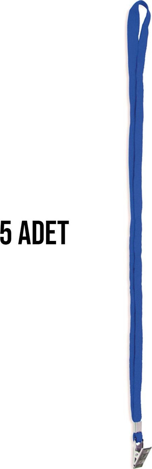 İnox Metal Klipsli Yaka Kartı İpi 5 Adet Mavi