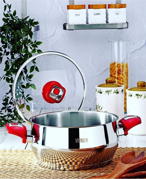 VIVALDI TOMBO ÇELİK TENCERE DERİN KIRMIZI KUPLU 20X10 3.2 LT G767 304 kalite Paslanmaz çelik Parlaklığına koruyan özenle polisajlanmış dış yüzey Endüstriyel kullanım için uygundur