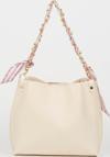 Kadın Fularlı Zincir Aksesuarlı Yumuşak Deri 3 Bölmeli EL Ve Omuz Çantası. En 25, Yükseklik 19, Alt Taban Genişliği 11, Fularlı Zincir El Askısı 44 cm. Ayarlanabilir Deri Omuz Askı Uzunluk 120 cm.