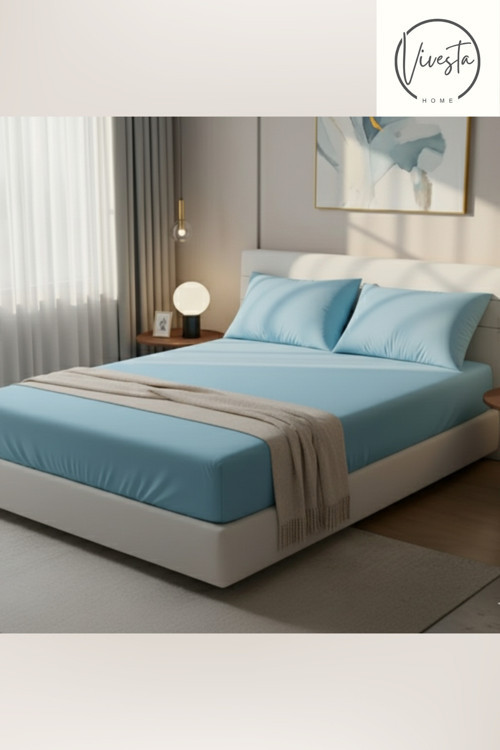 Vivesta Home 160X200 Cm Çift Kişilik Mavi Lastikli Çarşaf Seti + 2 Adet 50X70 Yastık Kılıfı–Yumuşak, Kaymaz Kumaş